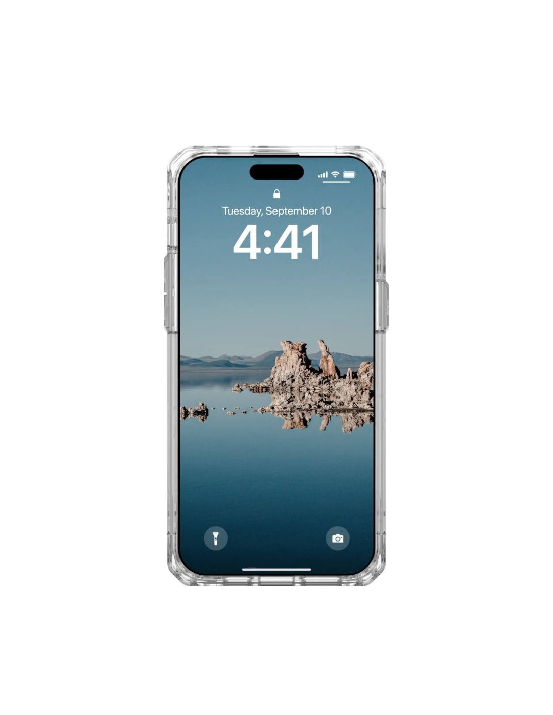 Urban Armor Gear 114305114348. Tipo de funda: Funda, Marca compatible: Apple, Compatibilidad: iPhone 15 Pro Max, Tamaño máximo de pantalla: 17 cm (6.7"), Coloración de superficie: Monocromo, Color del producto: Transparente