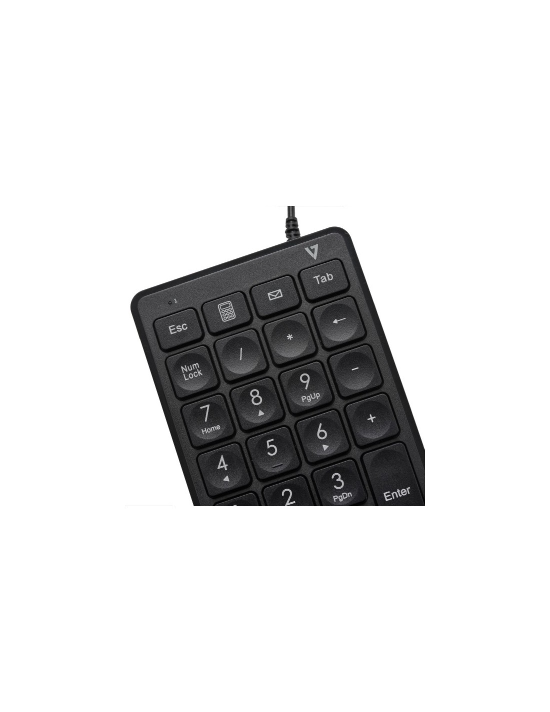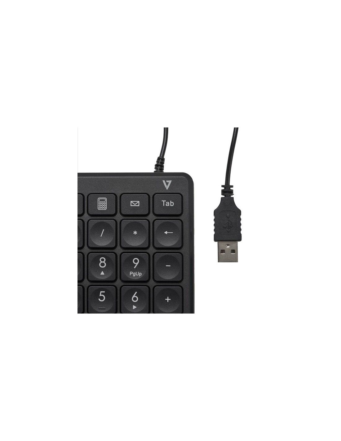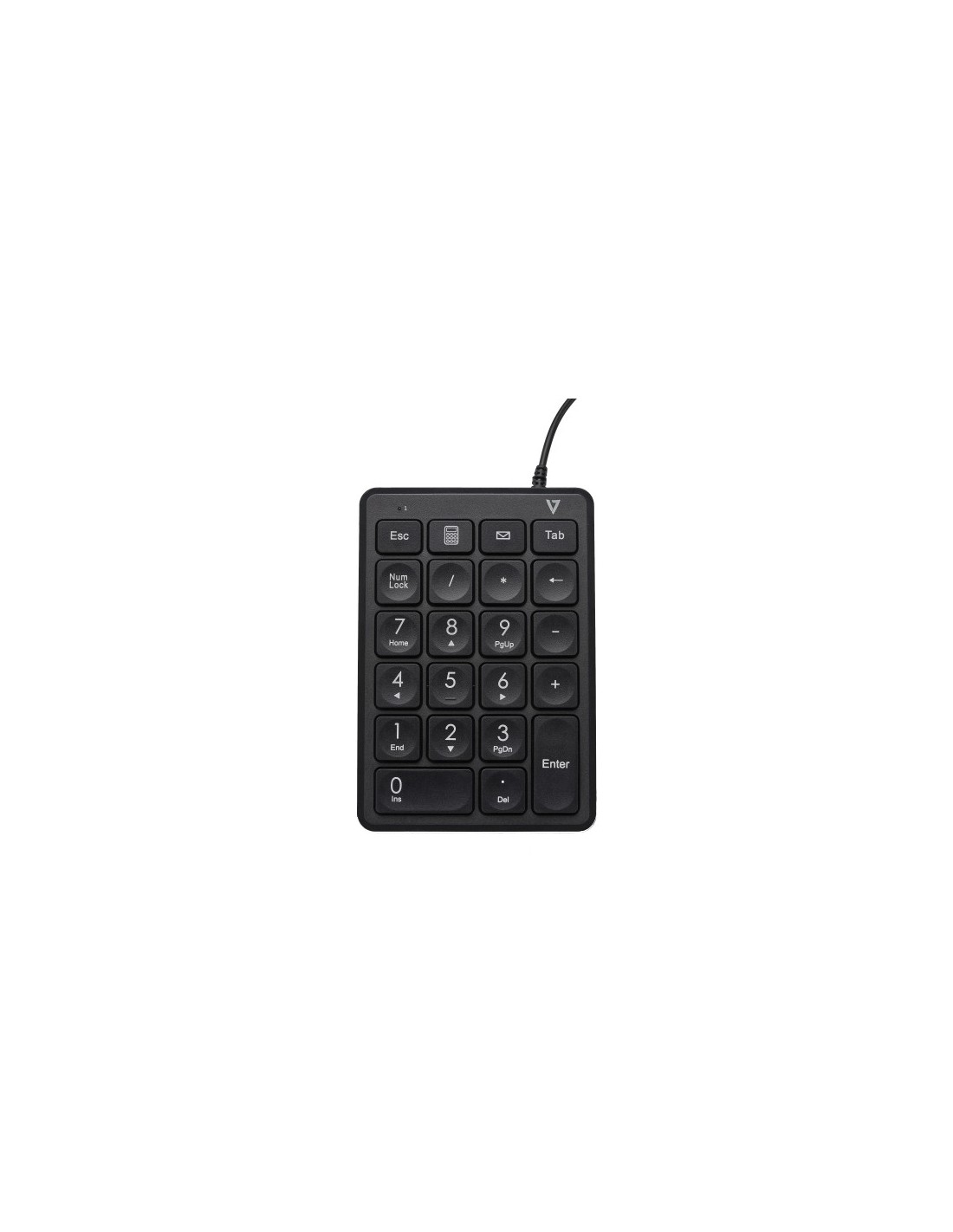 V7 Teclado numérico con cable USB KP350 de - 22 teclas - Teclas de acceso rápido de calculadora, tabulación, retroceso - Cable de 6 pies - USB tipo A - Teclado, ordenador portátil, laptop - Negro - Chrome OS - Windows - MacOS - Número, USB, 22, Portátil/PC, 1,8 m, Negro