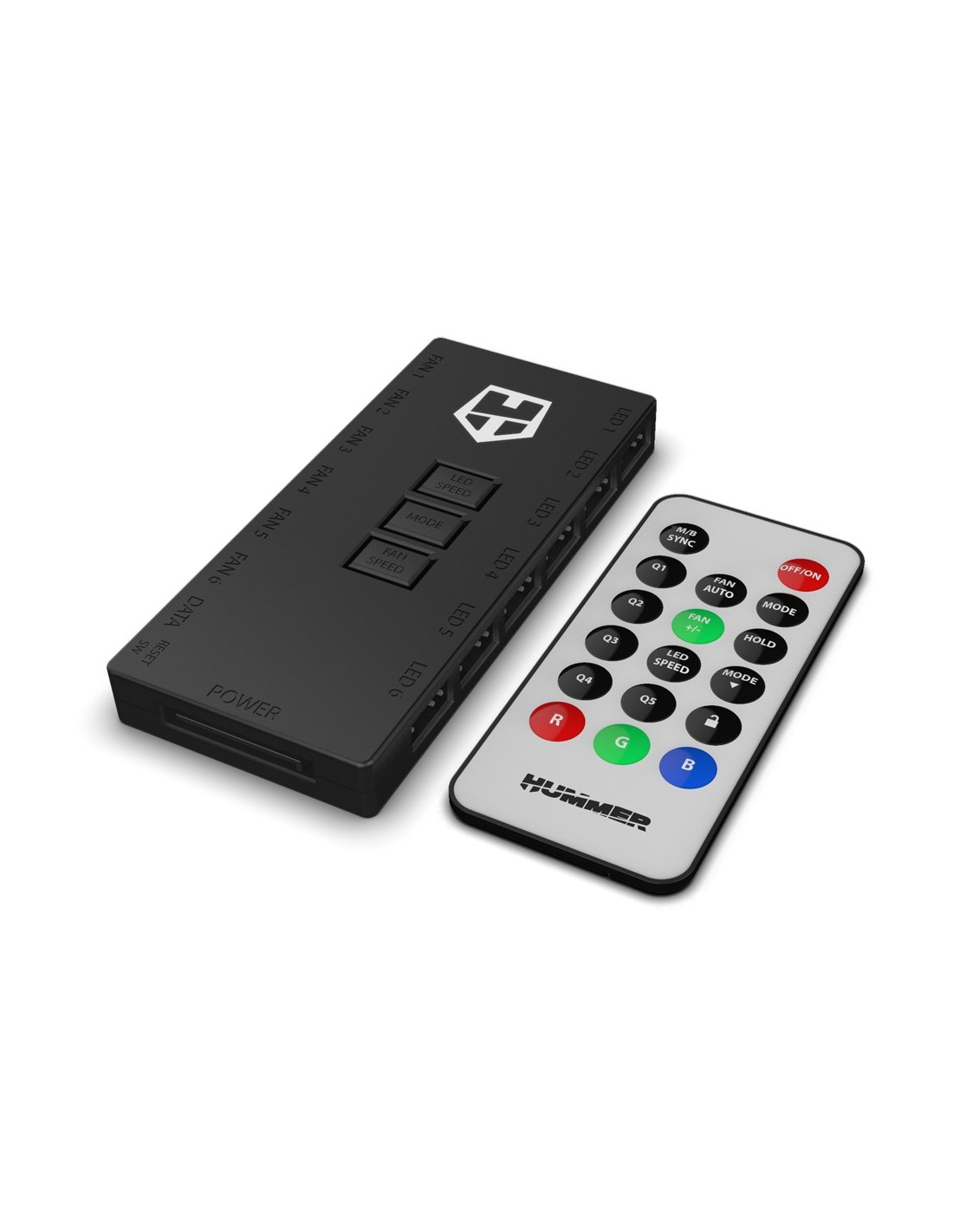 Con el controlador Nox Hummer R-HUB podrás sincronizar seis ventiladores y hasta seis dispositivos ARGB. Este controlador con mando a distancia te permitirá regular la velocidad y los efectos de iluminación de los ventiladores de tu equipo. Totalmente compatible con las mejores marcas de placas base del mercado, como las tecnologías Mystic Light Sync de MSI, RGB Sync de GIGABYTE o Aura RGB Sync de Asus, Nox Hummer R-HUB es la gran solución para controlar la iluminación de todo tu setup al completo.