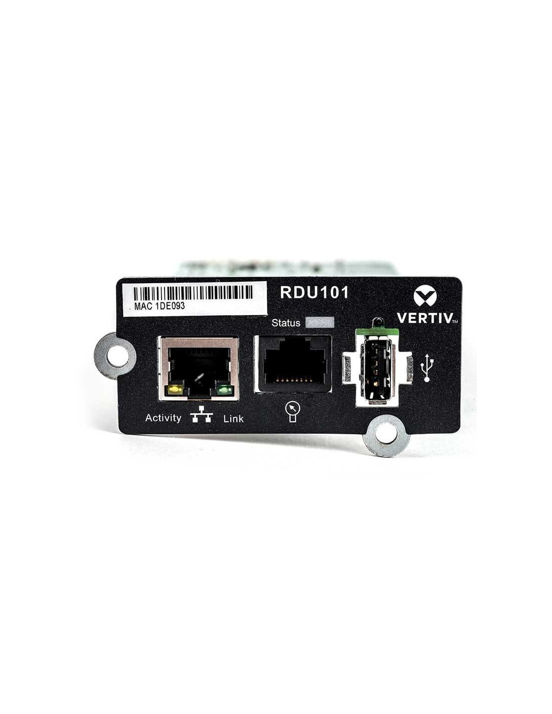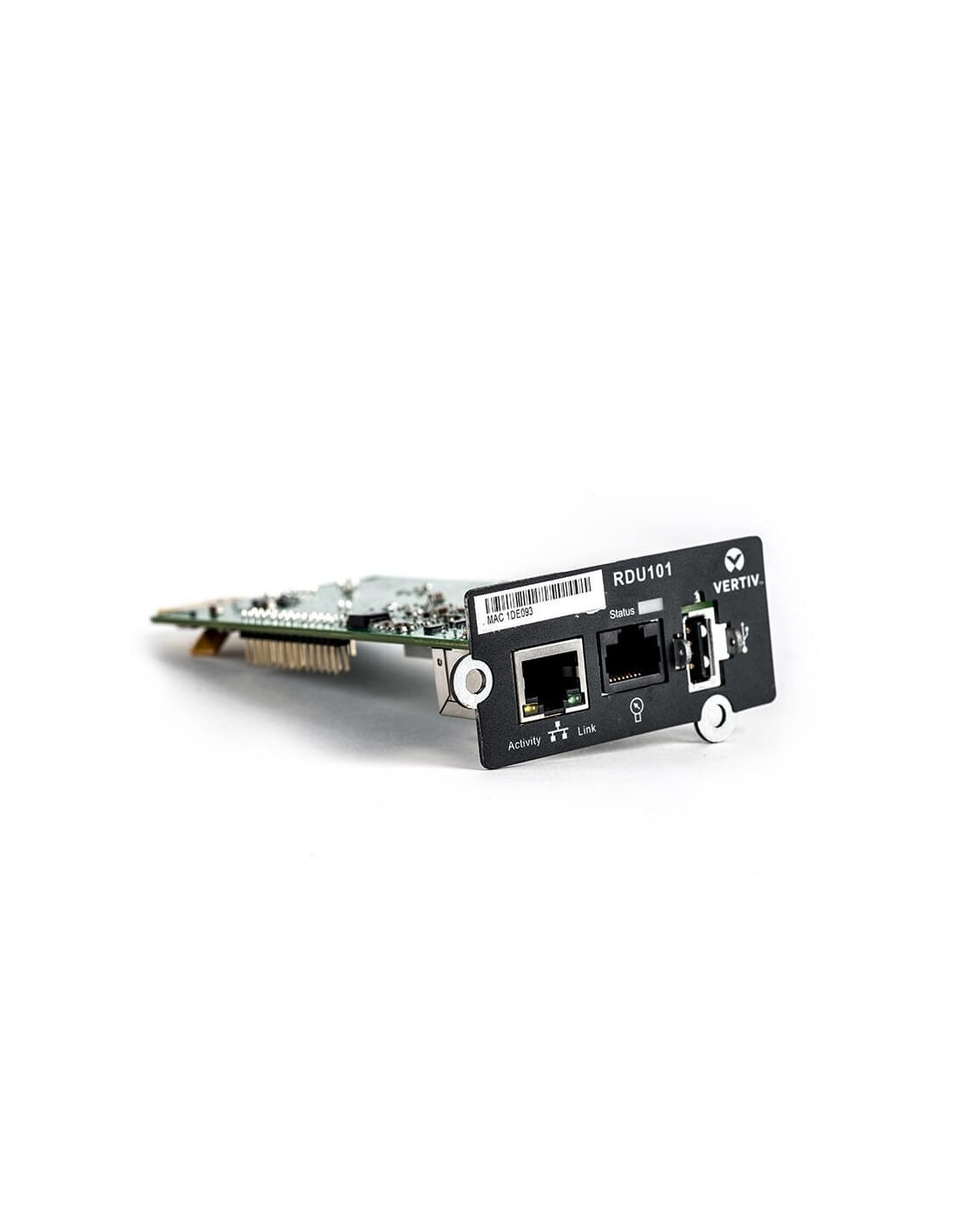 Vertiv IntelliSlot RDU101. Interno. Tecnología de conectividad: Alámbrico, Interfaz: Ethernet. Rango máximo de transferencia de datos: 100 Mbit/s. Color del producto: Negro