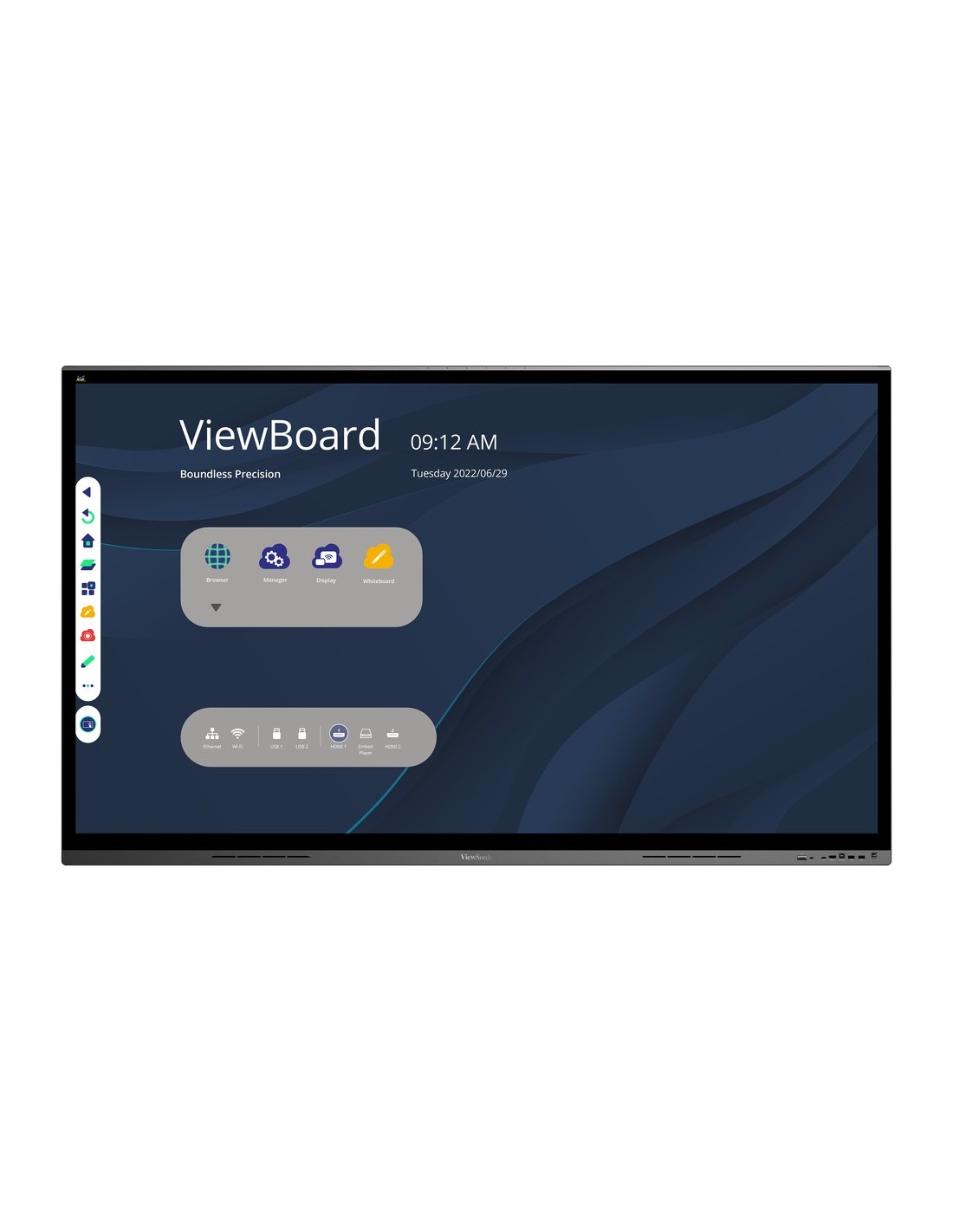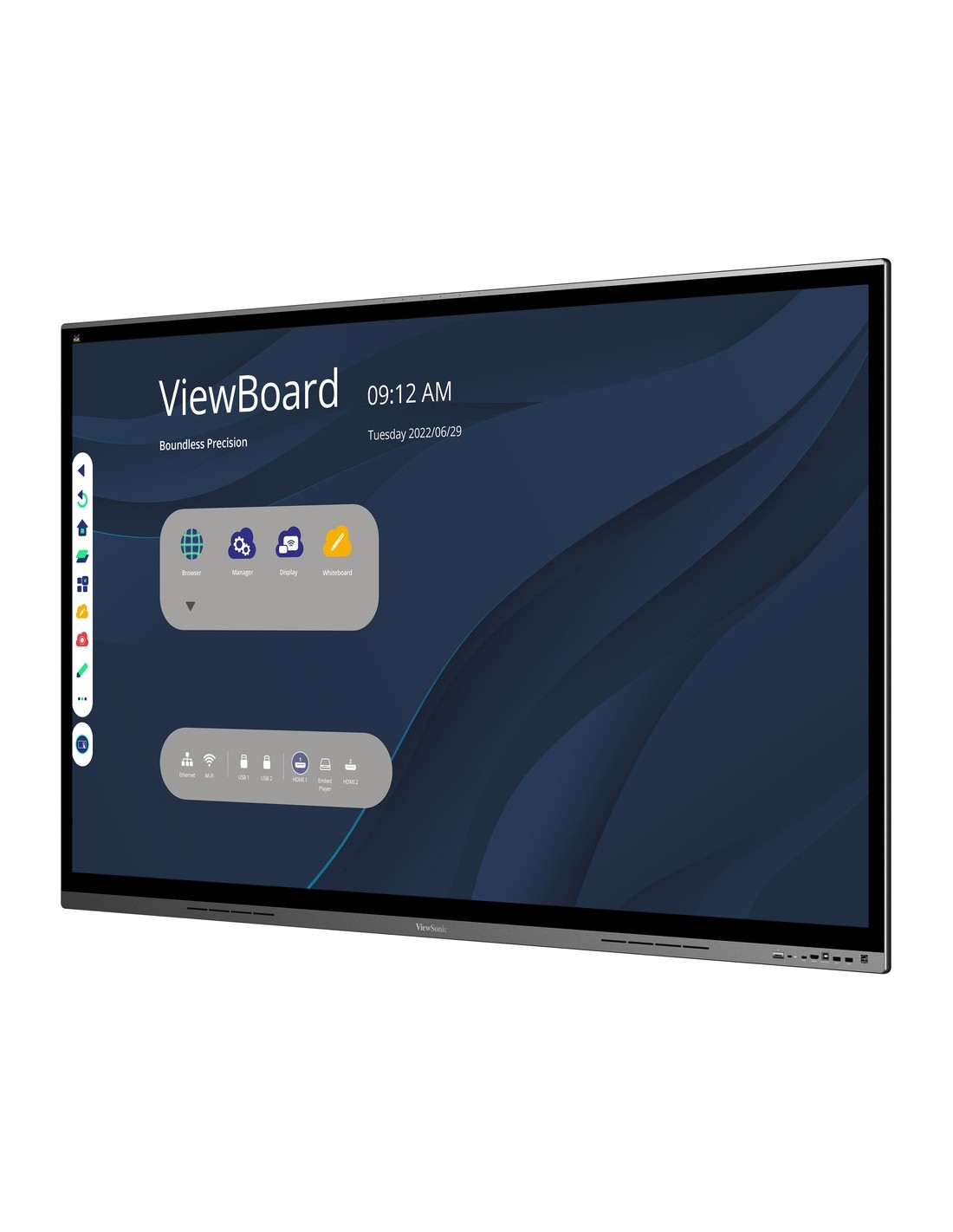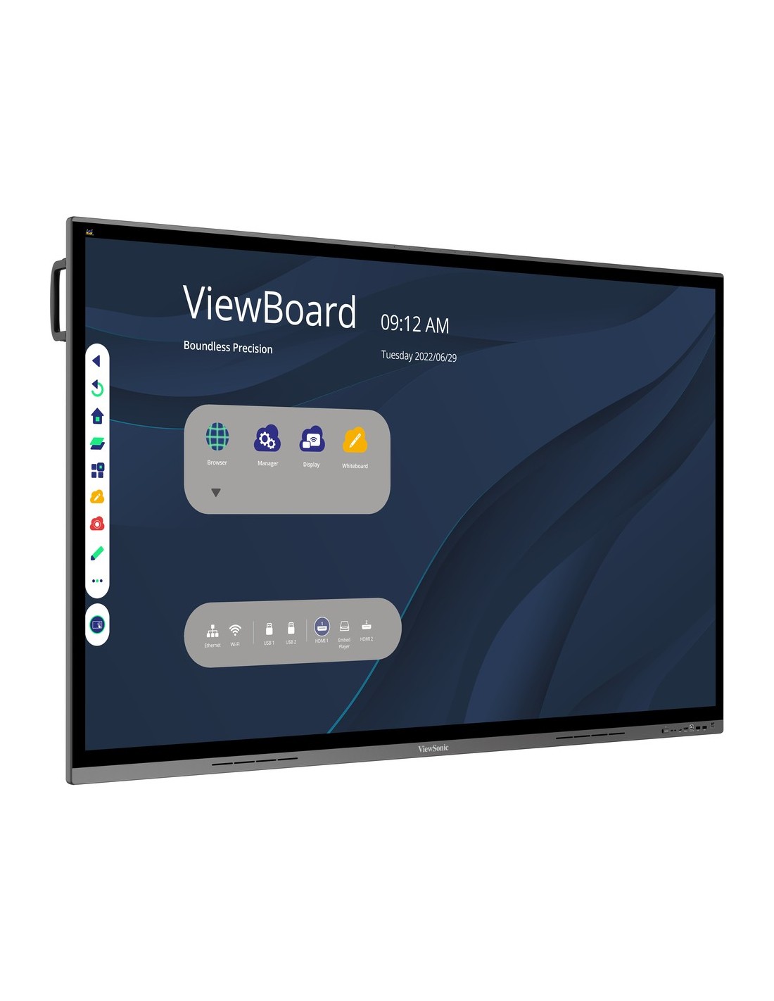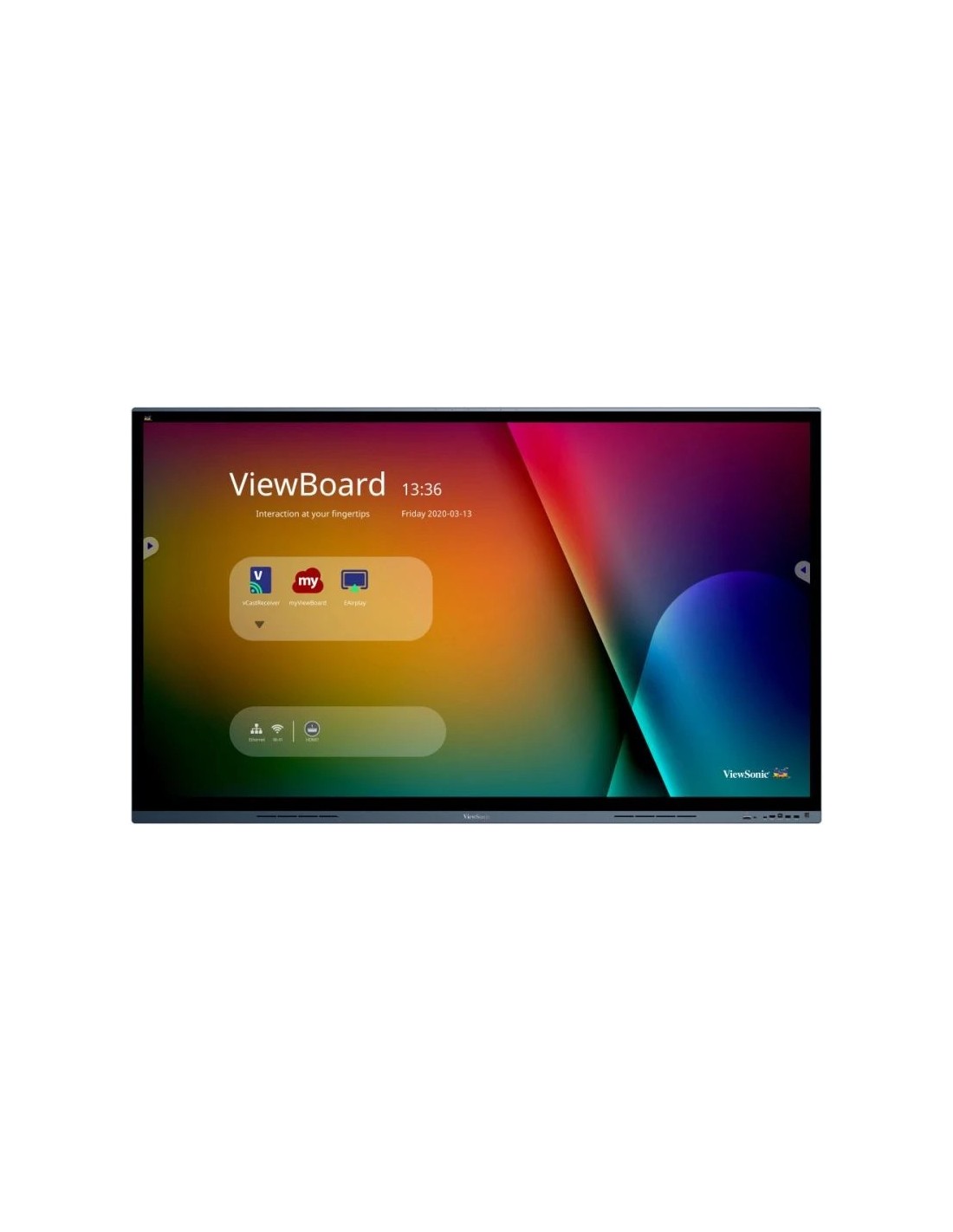 Viewsonic IFP7562. Diseño de producto: Panel plano interactivo. Diagonal de la pantalla: 190,5 cm (75"), Tecnología de visualización: LED, Resolución de la pantalla: 3840 x 2160 Pixeles, Brillo de pantalla: 350 cd / m², Tipo HD: 4K Ultra HD, Pantalla táctil. Wifi. Sistema operativo instalado: Android. Color del producto: Negro