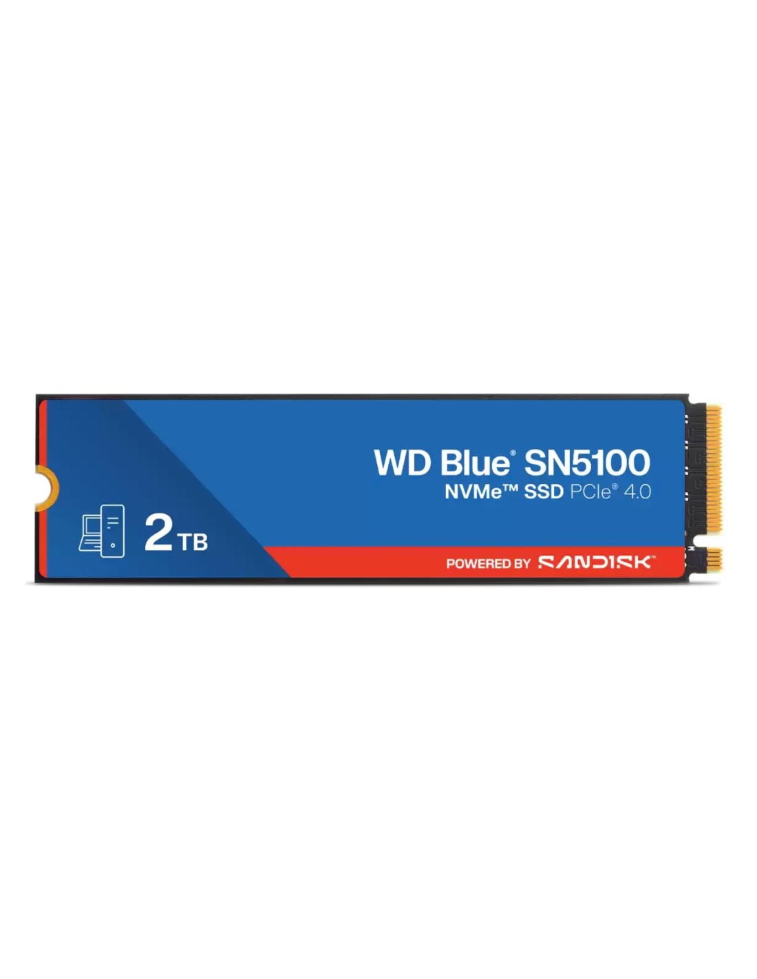 Western Digital WD Blue SN5100. SDD, capacidad: 2 TB, Factor de forma de disco SSD: M.2, Velocidad de lectura: 7100 MB/s, Velocidad de escritura: 6700 MB/s, Componente para: PC/ordenador portátil