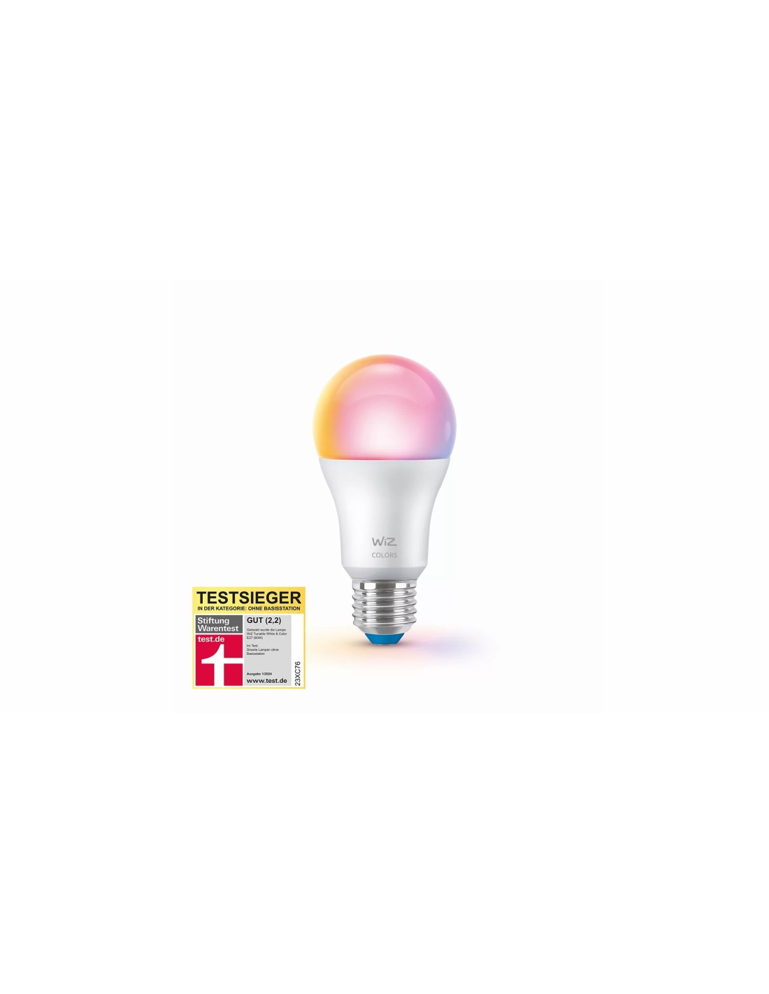 WiZ Bombilla 60 W A60 E27. Tipo: Bombilla inteligente, Color del producto: Blanco, Tipo de tapa de lámpara: E27. Clase de eficiencia de energía: F, Alimentación: Corriente alterna, Voltaje de entrada: 220-240 V. Ancho: 60 mm, Profundidad: 60 mm, Altura: 122 mm. Tipo de embalaje: Caja, Ancho del paquete: 7 mm, Profundidad del paquete: 7 mm. Colocación soportada: Interior