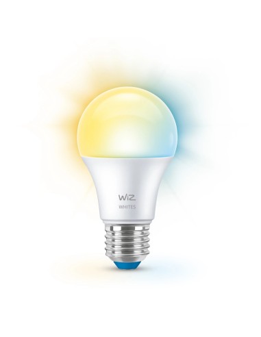 WiZ Bombilla 60 W A60 E27. Tipo: Bombilla inteligente, Interfaz: Wi-Fi/Bluetooth, Color del producto: Blanco. Clase de eficiencia de energía: F, Voltaje de entrada: 220-240 V, Frecuencia de entrada AC: 50-60 Hz. Ancho: 60 mm, Profundidad: 111 mm, Altura: 111 mm. Ancho del paquete: 70 mm, Profundidad del paquete: 70 mm, Altura del paquete: 160 mm. Cantidad por paquete: 1 pieza(s)