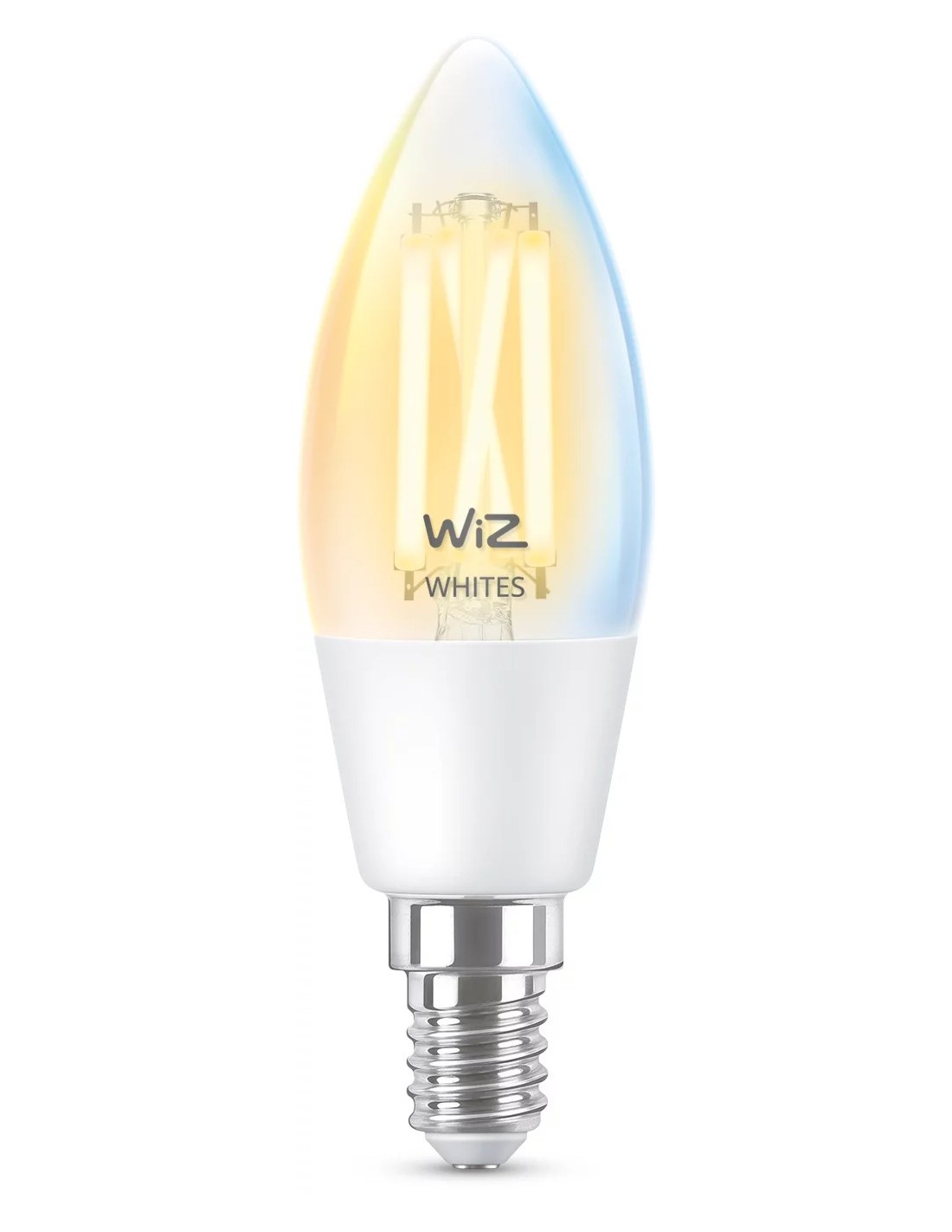 WiZ Bombilla con filamento transparente 40 W C35 E14, Bombilla inteligente, Wi-Fi, Blanco, E14, C35, Multi