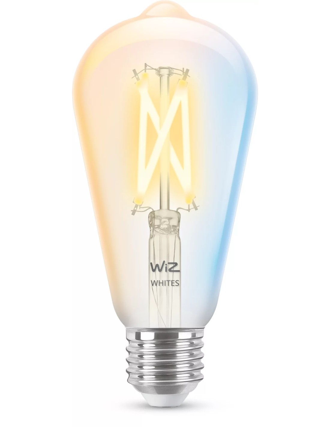 WiZ Bombilla con filamento transparente 60 W ST64 E27. Tipo: Bombilla inteligente, Interfaz: Wi-Fi, Color del producto: Transparente. Clase de eficiencia de energía: E, Voltaje de entrada: 220-240 V, Frecuencia de entrada AC: 50 - 60 Hz. Ancho: 64 mm, Profundidad: 143 mm, Altura: 141 mm. Ancho del paquete: 8,5 mm, Profundidad del paquete: 8,5 mm, Altura del paquete: 18,5 mm. Cantidad por paquete: 1 pieza(s)