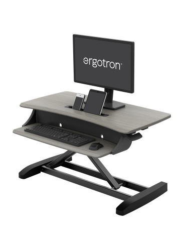 Ergotron WorkFit-Z Mini. Color del producto: Negro, Gris, Tamaño máximo de pantalla: 61 cm (24"), Capacidad máxima de peso: 11,3 kg. Altura ajustable (máx.): 31,8 cm. Ancho: 790 mm, Profundidad: 530 mm, Peso: 14,5 kg. Ancho del paquete: 860 mm, Profundidad del paquete: 690 mm, Altura del paquete: 200 mm