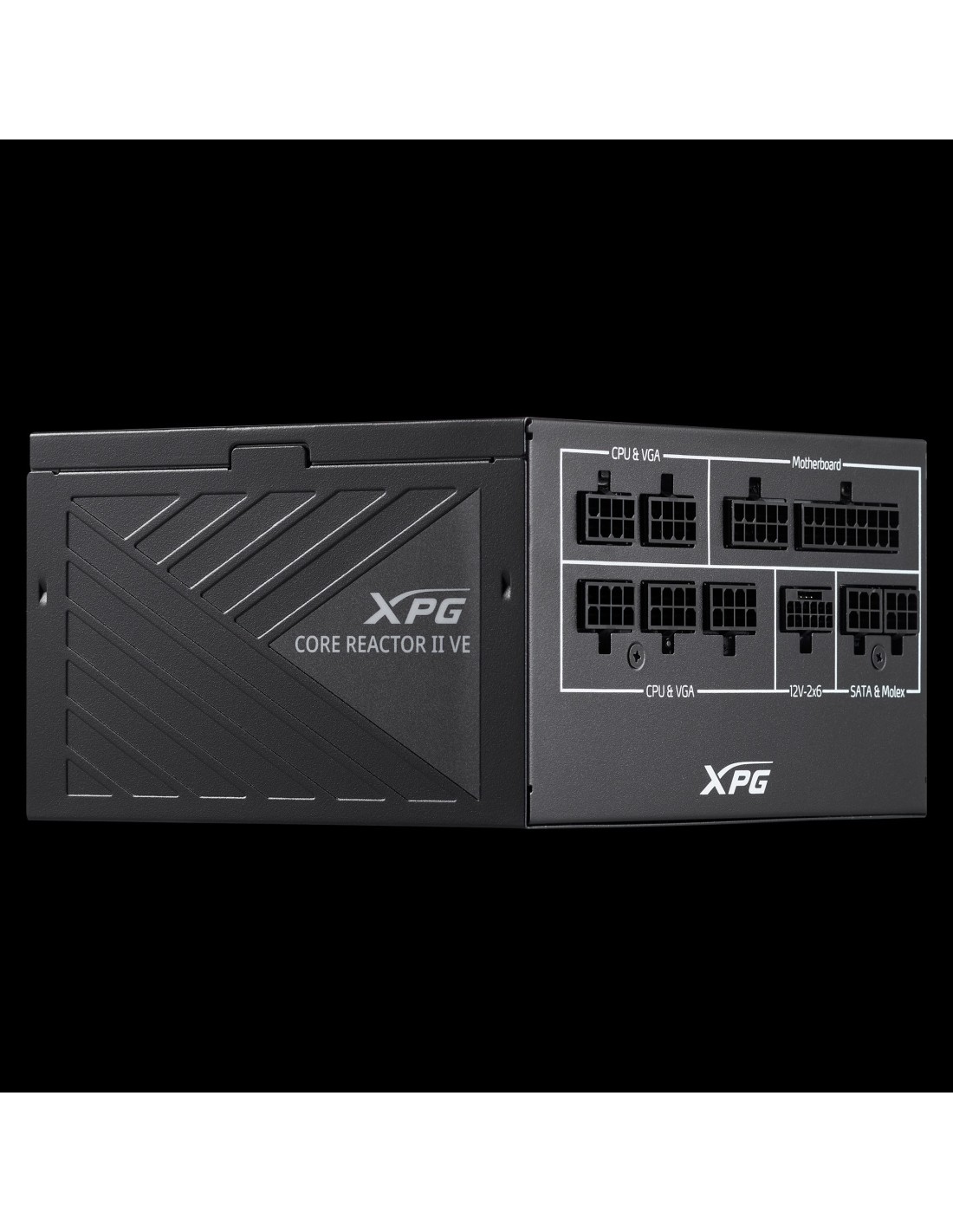 XPG COREREACTOR II VE 650W Fuente de Alimentación. Potencia total: 650 W, Voltaje de entrada AC: 100 - 240 V, Frecuencia de entrada AC: 47 - 63 Hz. Alimentador de energía para tarjeta madre: 24-pin ATX, Longitud del cable de alimentación de la placa base: 65 cm, Longitud del cable de alimentación SATA: 150,450 mm. Utilizar con: PC, Factor de forma de fuente de alimentación (PSU): ATX, Certificación 80 PLUS: 80 PLUS Gold. Color del producto: Negro, Tipo de enfriamiento: Activo, Diámetro de ventilador: 12 cm. Certificación: CB / CE / FCC / TUV / cTUVus / BSMI / CCC NOM / FCC IC / UKCA / TUV / TUV S-Mark / cTUVus