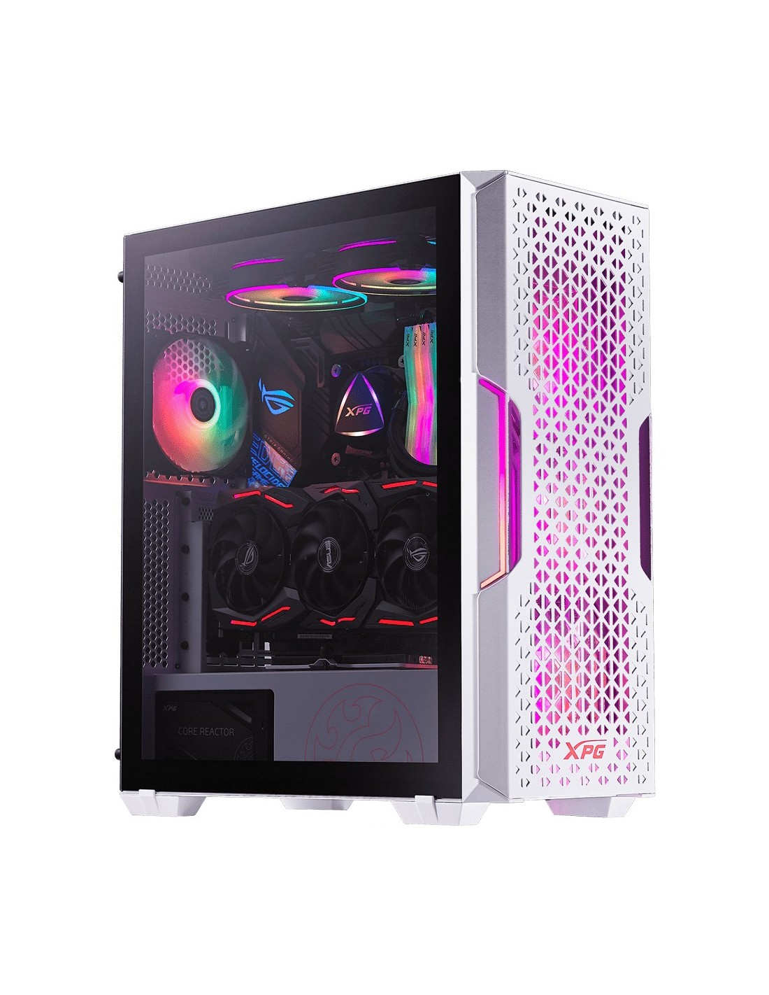 Panel frontal de MALLA magnética La serie XPG STARKER AIR es un chasis muy compacto para aprovechar al máximo el formato ATX. Desarrollado por XPG: Exoskeleton Design Language, tiene un diseño de panel frontal funcional y elegante con dos tiras de iluminación ARGB frontales para resaltar su ADN de juego y se ofrece en variantes de color blanco y negro.