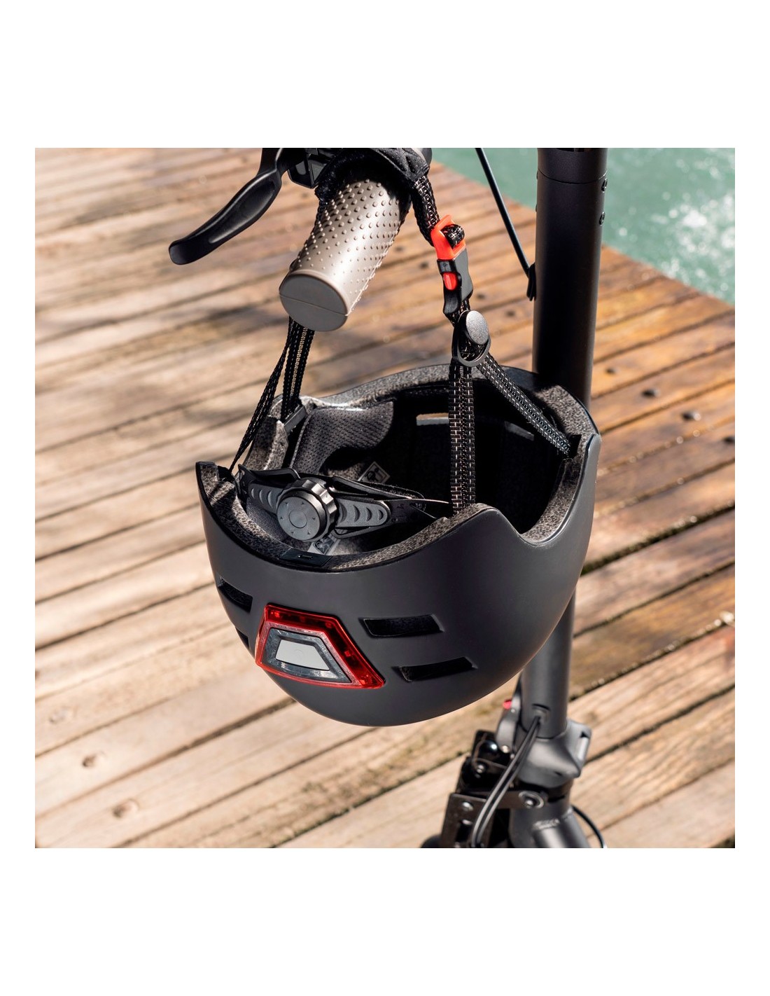 Tu seguridad es lo primero. Con este casco homologado irás protegidx siempre en tu patinete o en tu bicicleta eléctrica. Casco en color negro y con luces LED frontal y trasera para que los demás conductores te vean al instante. La talla M está indicada para 54-57cm. La talla L está indicada para 58-61cm.