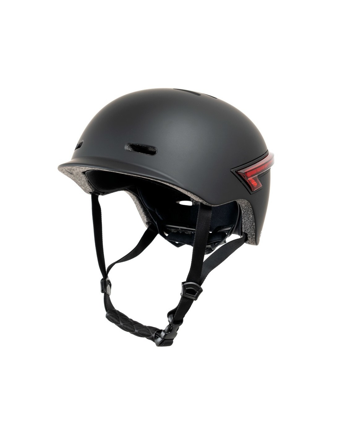 Casco inteligente homologado para patinetes y bicicletas. Luces LED intermitentes con control por mando a distancia Bluetooth para que puedas indicar adónde vas fácilmente. Distintos modos de iluminación LED: intermitentes, fijas, apagado. Color negro. Indicado para 58-61cm.