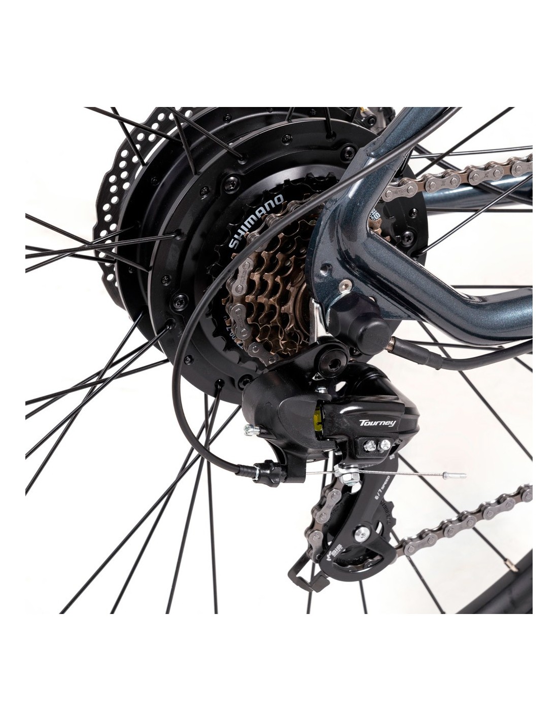 Youin Everest. Tecnología de batería: Ión de litio, Capacidad de la batería: 14 Ah, Distancia por batería cargada (modo de asistencia al pedaleo): 80 km. Peso (incluyendo batería): 27 kg, Longitud de los puños para manillar: 194,7 cm, Ancho: 240 mm. Longitud del eje: 11 cm, Longitud de la tija del sillín: 30 cm, Alcance: 46,8 cm. Material del marco: Aluminio, Material del cuerpo: Aluminio, Desviador trasero: Shimano ARDTY300D. Cantidad por palé: 1 pieza(s)