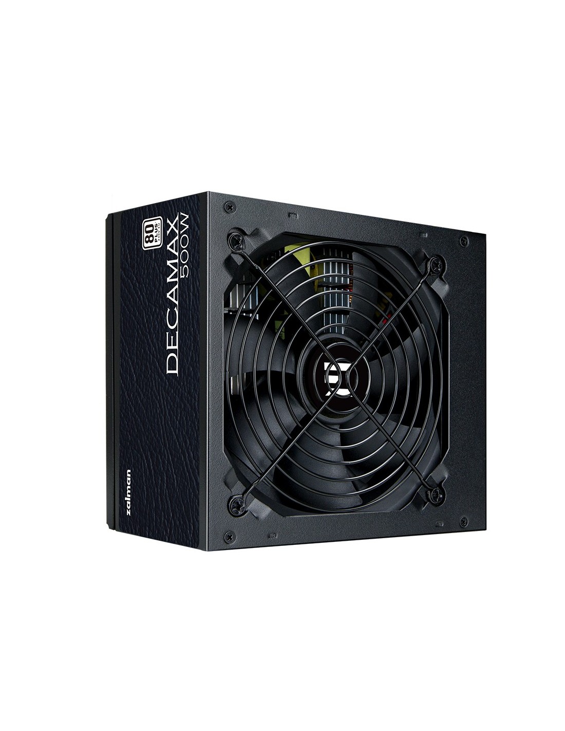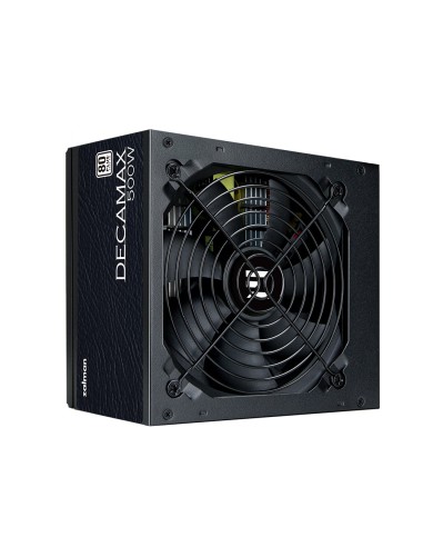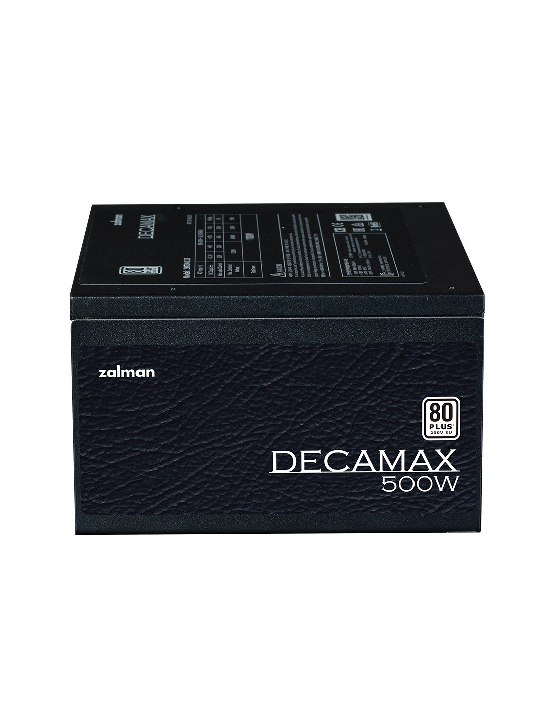 Zalman Decamax. Potencia total: 500 W, Voltaje de entrada AC: 200 - 240 V, Frecuencia de entrada AC: 50/60 Hz. Utilizar con: PC, Factor de forma de fuente de alimentación (PSU): ATX, Certificación 80 PLUS: 80 PLUS. Color del producto: Negro, Diámetro de ventilador: 12 cm. Certificados de conformidad: CB, CE, EAC, KC, RoHS. Ancho: 140 mm, Profundidad: 150 mm, Altura: 86 mm