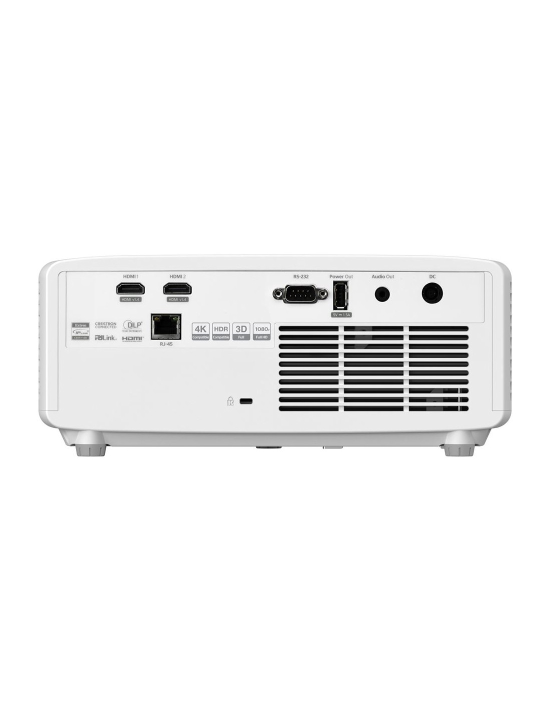 Optoma ZH420. Brillo de proyector: 4300 lúmenes ANSI, Tecnología de proyección: DLP, Resolución original del proyector: 1080p (1920x1080). Tipo de fuente luminosa: Laser, Duración de la fuente luminosa: 30000 h. Intervalo de longitud focal: 16.9 - 21.61 mm, Tipo de zoom: Manual, Alcance de zoom: 1.3:1. Señal analógica: NTSC 3.58, NTSC 4.43, NTSC J, NTSC M, PAL B, PAL D, PAL G, PAL H, PAL I, PAL M, PAL N, SECAM B,..., Formatos 3D admitidos: Secuencia de fotogramas, Formatos gráficos soportados: 640 x 480 (VGA), 800 x 600 (SVGA), 1024 x 768 (XGA), 1280 x 1024 (SXGA), 1280 x 720 (HD 720), 1280.... Tipo de serie de interfaz: RJ-45, RS-232