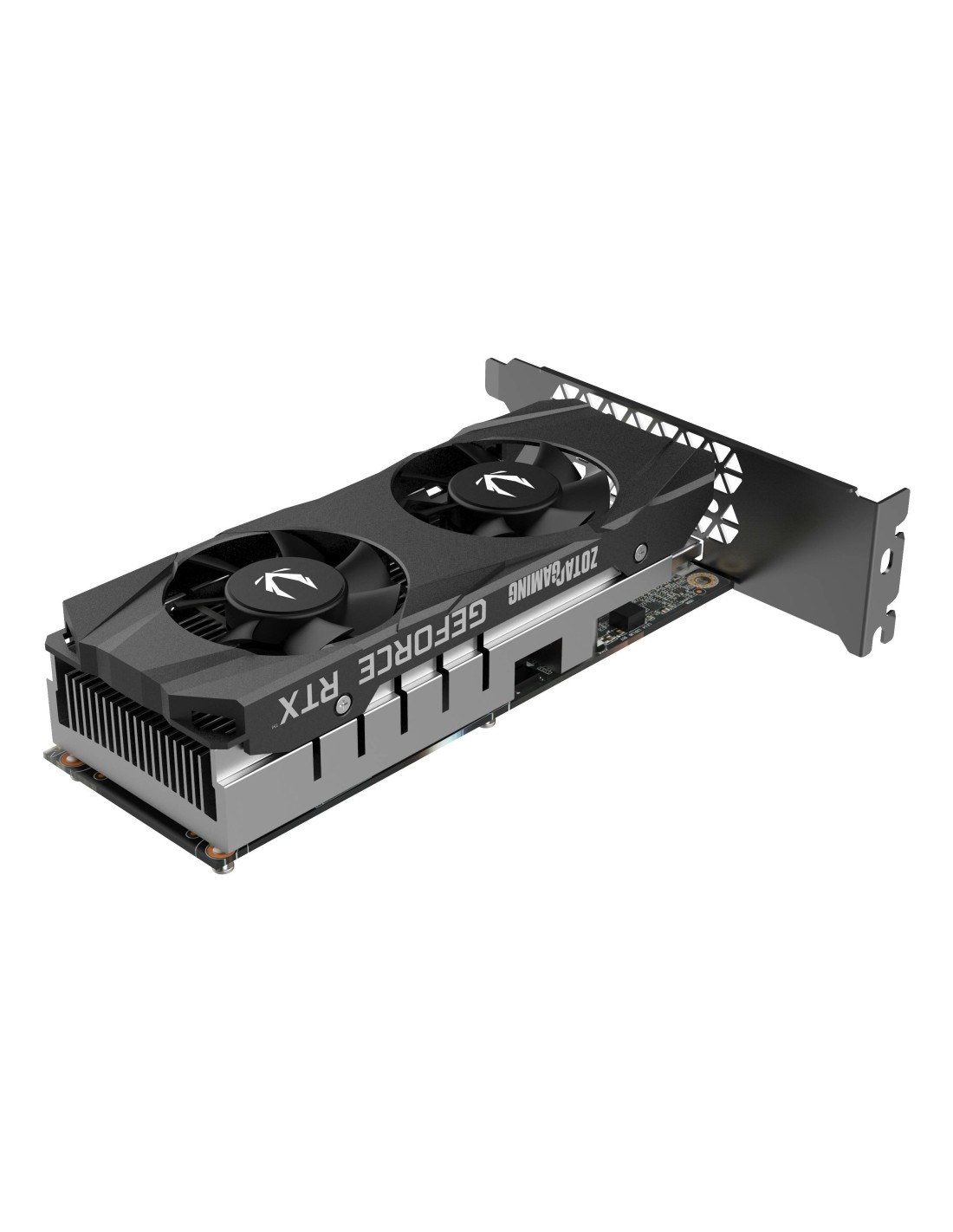 Zotac GAMING GeForce RTX 3050. Familia de procesadores de gráficos: NVIDIA, Procesador gráfico: GeForce RTX 3050. Capacidad memoria de adaptador gráfico: 6 GB, Tipo de memoria de adaptador gráfico: GDDR6, Ancho de datos: 96 bit. Máxima resolución: 7680 x 4320 Pixeles. Versión DirectX: 12 Ultimate, Versión OpenGL: 4.6. Tipo de interfaz: PCI Express x8 4.0. Tipo de enfriamiento: Activo, Número de ventiladores: 2 Ventilador(es)