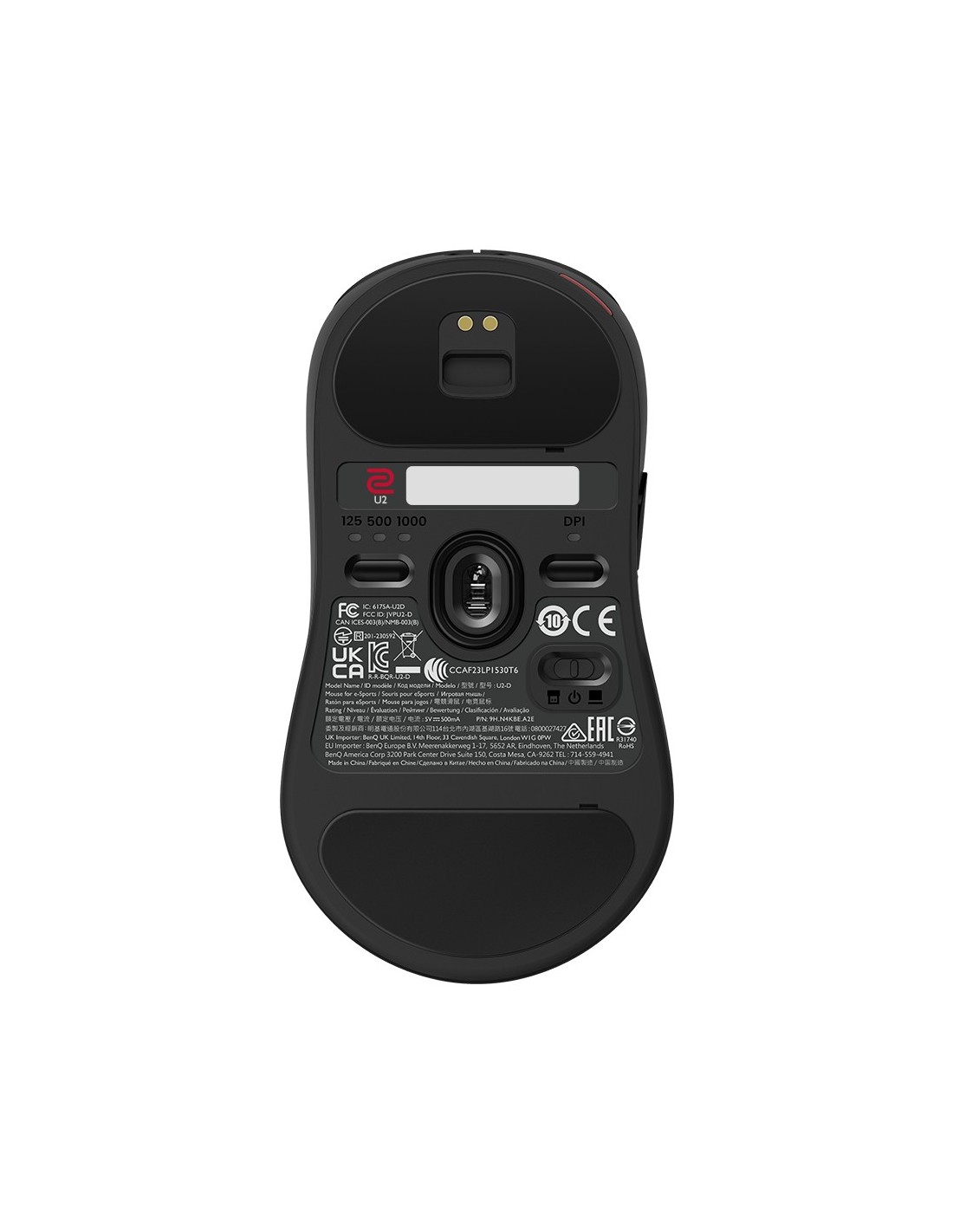 ZOWIE U2. Factor de forma: Ambidextro. Tecnología de detección de movimientos: Óptico, Interfaz del dispositivo: RF inalámbrico, Resolución de movimiento: 3200 DPI, Tipo de botones: Botones presionados, Cantidad de botones: 5, Tipo de desplazamiento: Rueda. Fuente de energía: Baterías. Color del producto: Negro