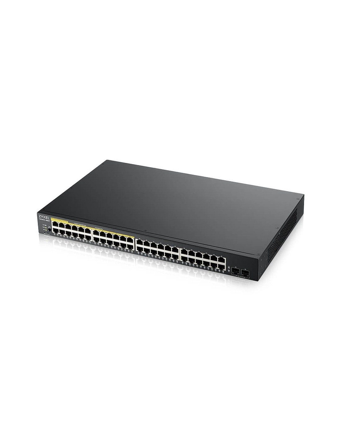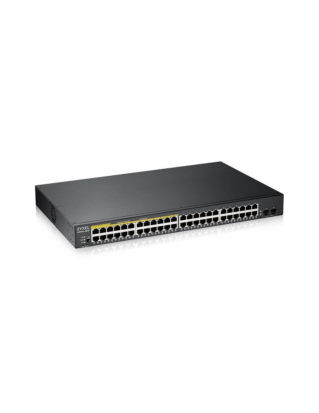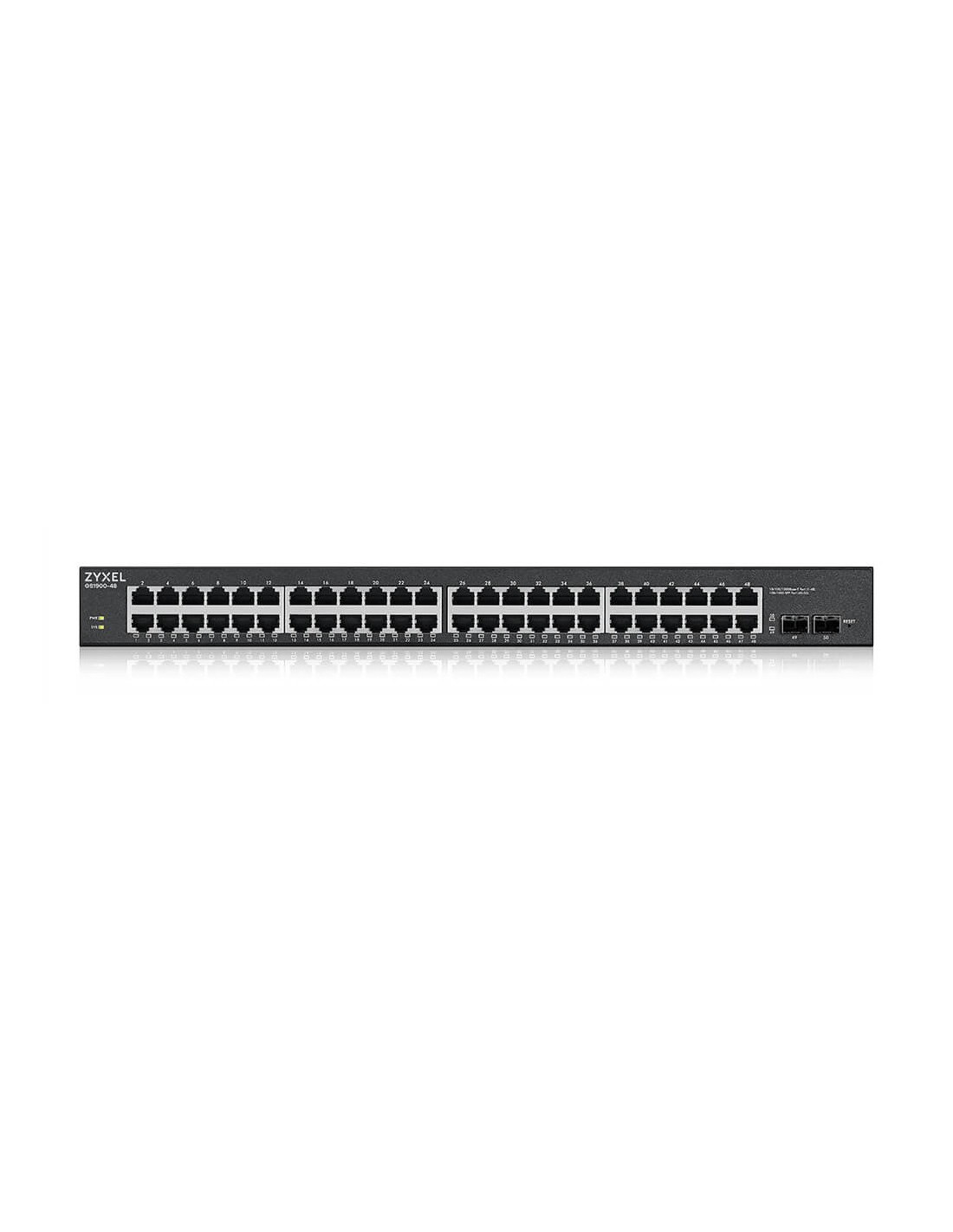Zyxel GS1900-48HPv2. Tipo de interruptor: Gestionado, Capa del interruptor: L2. Puertos tipo básico de conmutación RJ-45 Ethernet: Gigabit Ethernet (10/100/1000), Cantidad de puertos básicos de conmutación RJ-45 Ethernet: 48. Bidireccional completo (Full duplex). Tabla de direcciones MAC: 8000 entradas, Capacidad de conmutación: 100 Gbit/s. Estándares de red: IEEE 802.1Q, IEEE 802.1p, IEEE 802.3, IEEE 802.3ab, IEEE 802.3ad, IEEE 802.3af, IEEE 802.3at, IEEE.... Conector eléctrico: Toma de entrada de CC. Energía sobre Ethernet (PoE). Montaje en rack