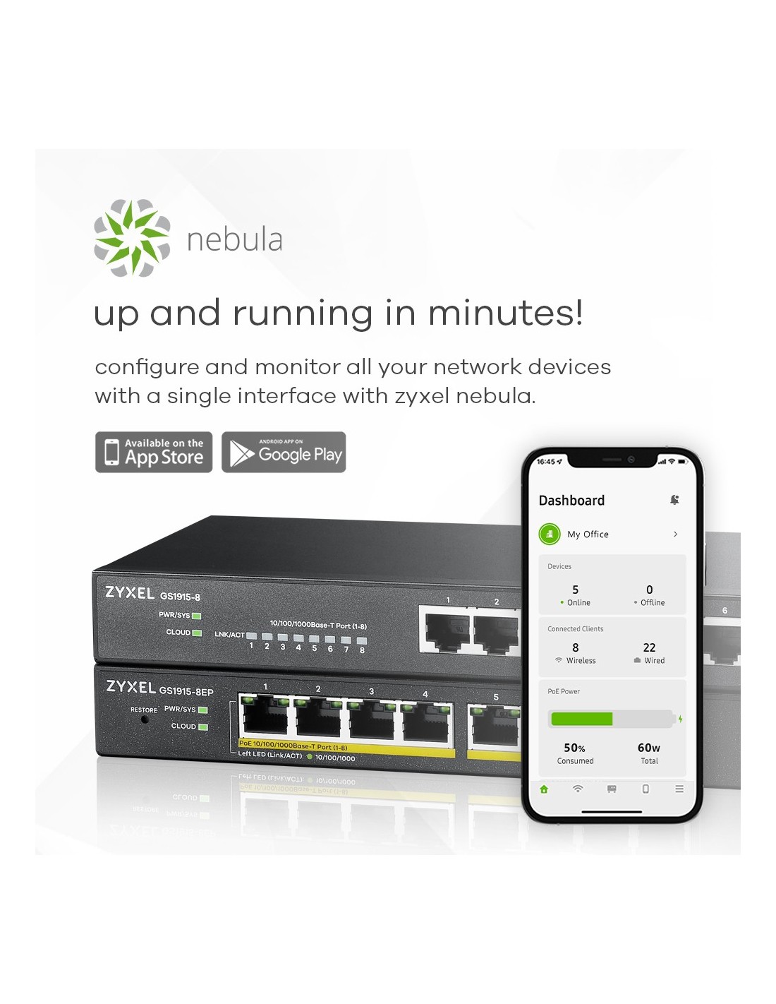 Zyxel GS1915-8EP, Gestionado, L2, Gigabit Ethernet (10/100/1000), Bidireccional completo (Full duplex), Energía sobre Ethernet (PoE)