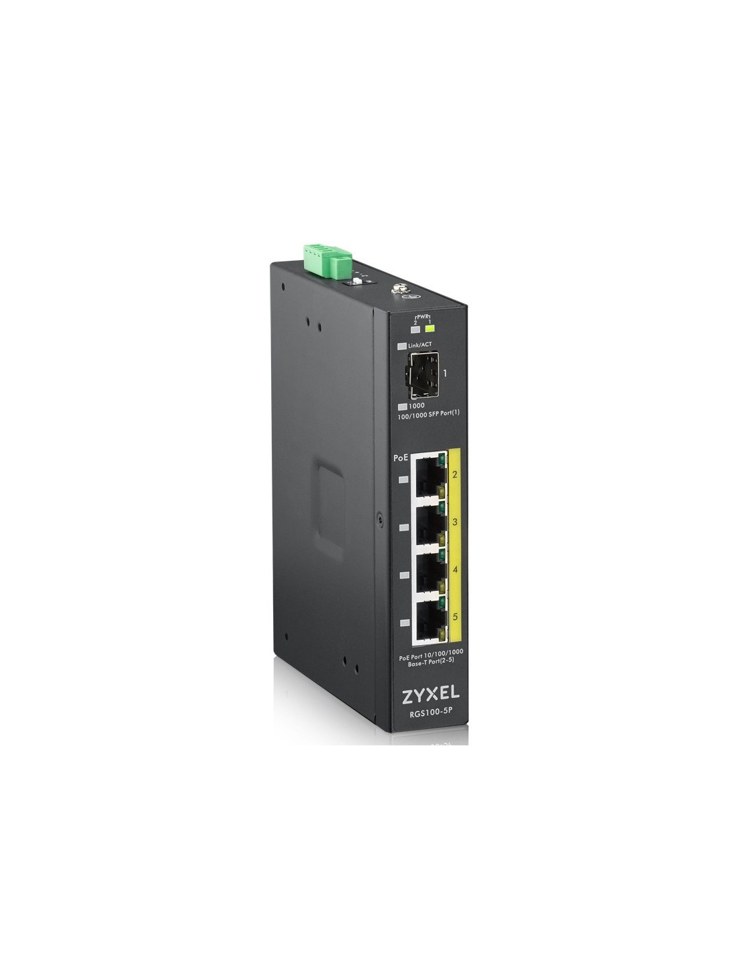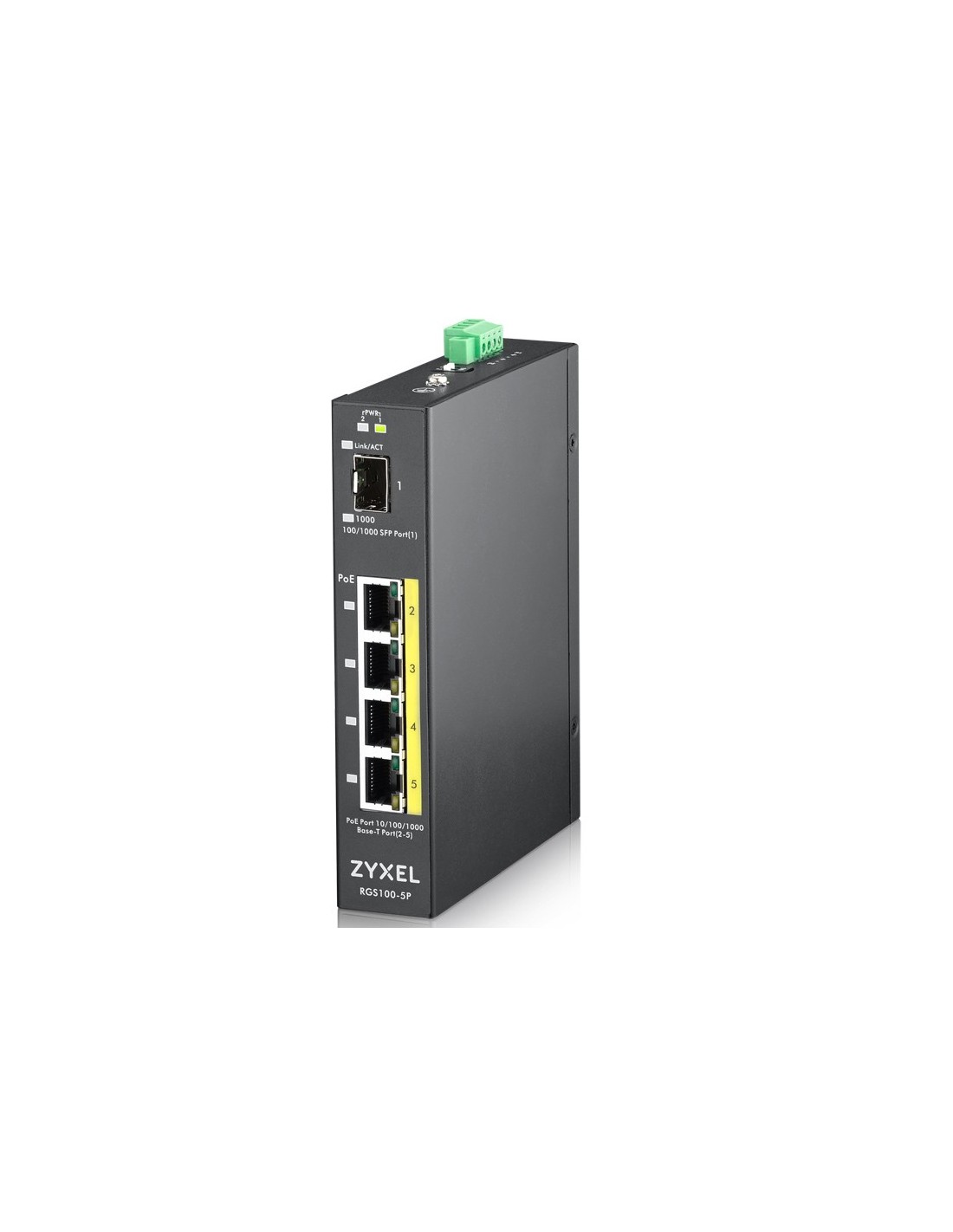 Zyxel RGS100-5P, No administrado, L2, Gigabit Ethernet (10/100/1000), Energía sobre Ethernet (PoE), Montaje en rack, Montaje de pared
