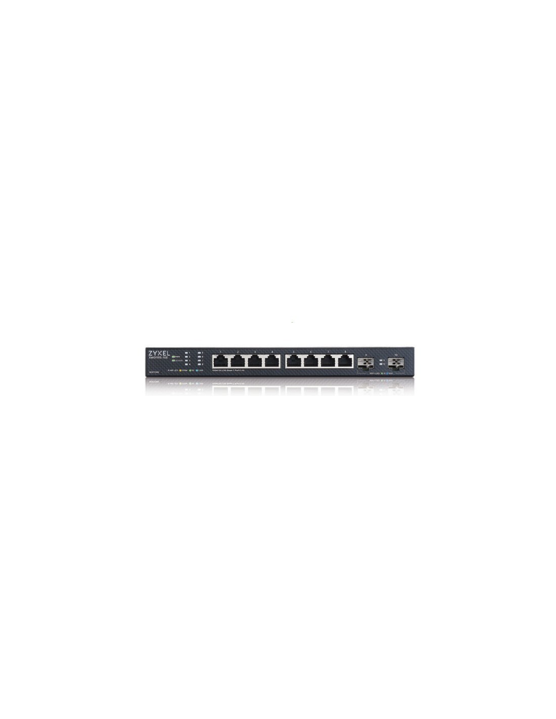 Zyxel XMG1915-10E. Tipo de interruptor: Gestionado, Capa del interruptor: L2. Puertos tipo básico de conmutación RJ-45 Ethernet: 2.5G Ethernet (100/1000/2500), Cantidad de puertos básicos de conmutación RJ-45 Ethernet: 8. Tabla de direcciones MAC: 16000 entradas, Capacidad de conmutación: 80 Gbit/s. Estándares de red: IEEE 802.1p, IEEE 802.3ab, IEEE 802.3ae, IEEE 802.3at, IEEE 802.3az, IEEE 802.3bt, IEEE 802.3bz,...